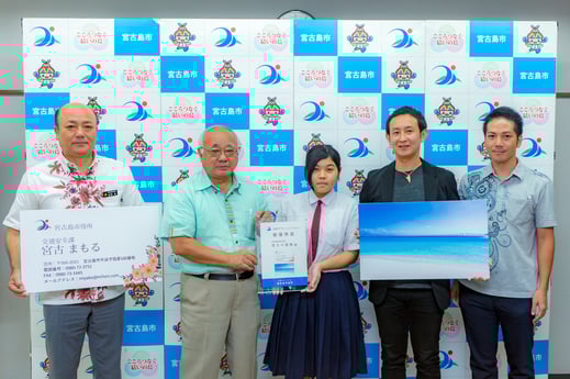 最優秀賞に選ばれたのは、伊良部高等学校 2 年 佐久川 愛美さんの作品。佐久川さんの作品は白い砂浜と宮古ブルーと来間大橋、見ているだけで宮古島の海に行きたくなるような雰囲気の構図というところが評価され、最優秀賞に選ばれました。